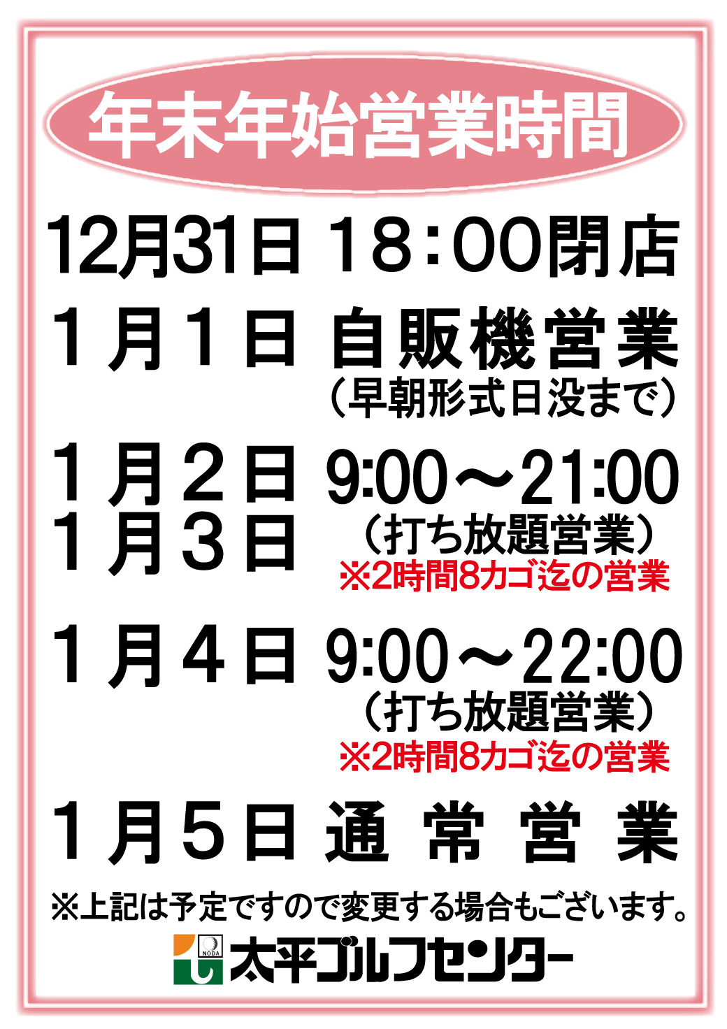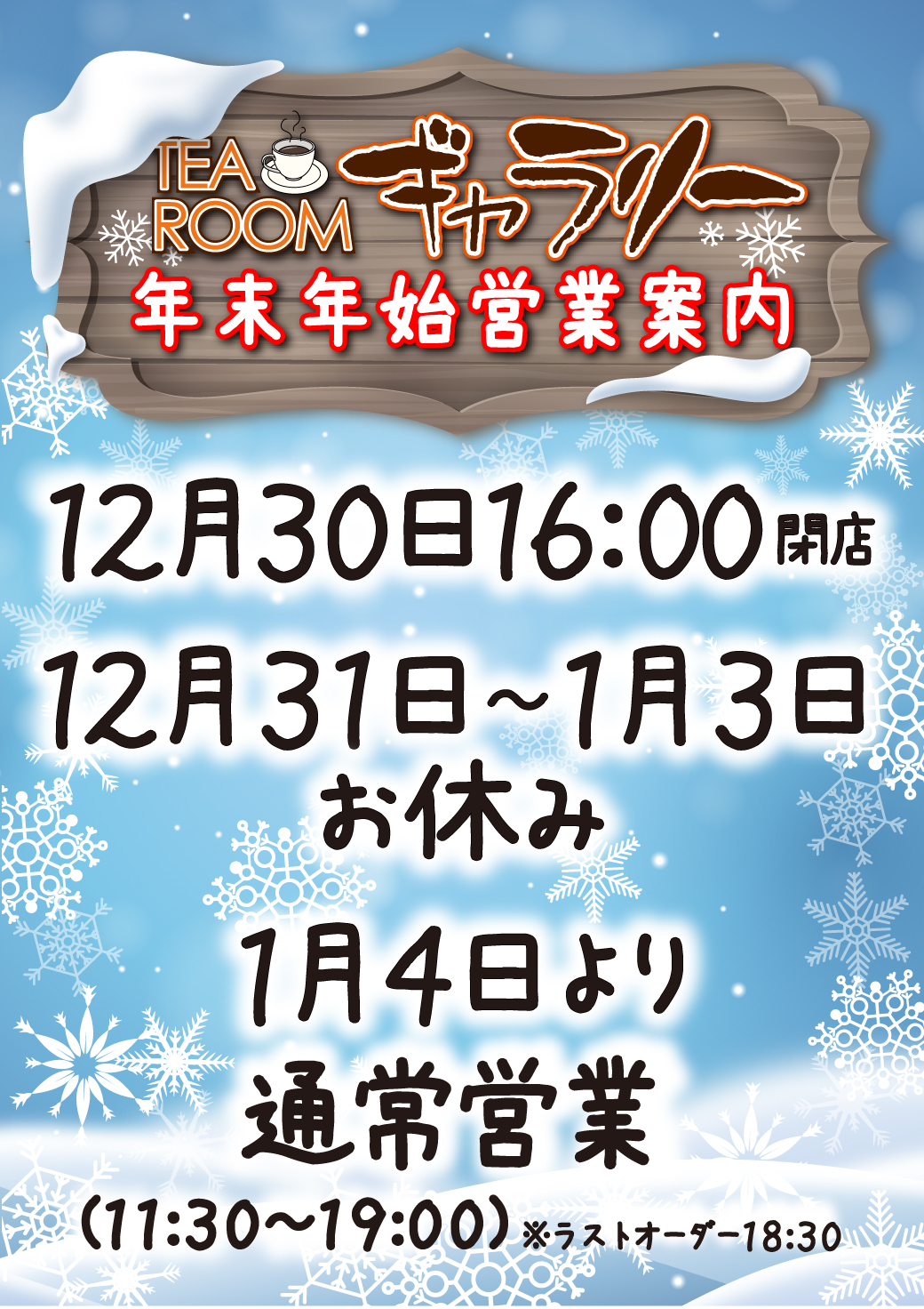 年末年始営業時間のお知らせ